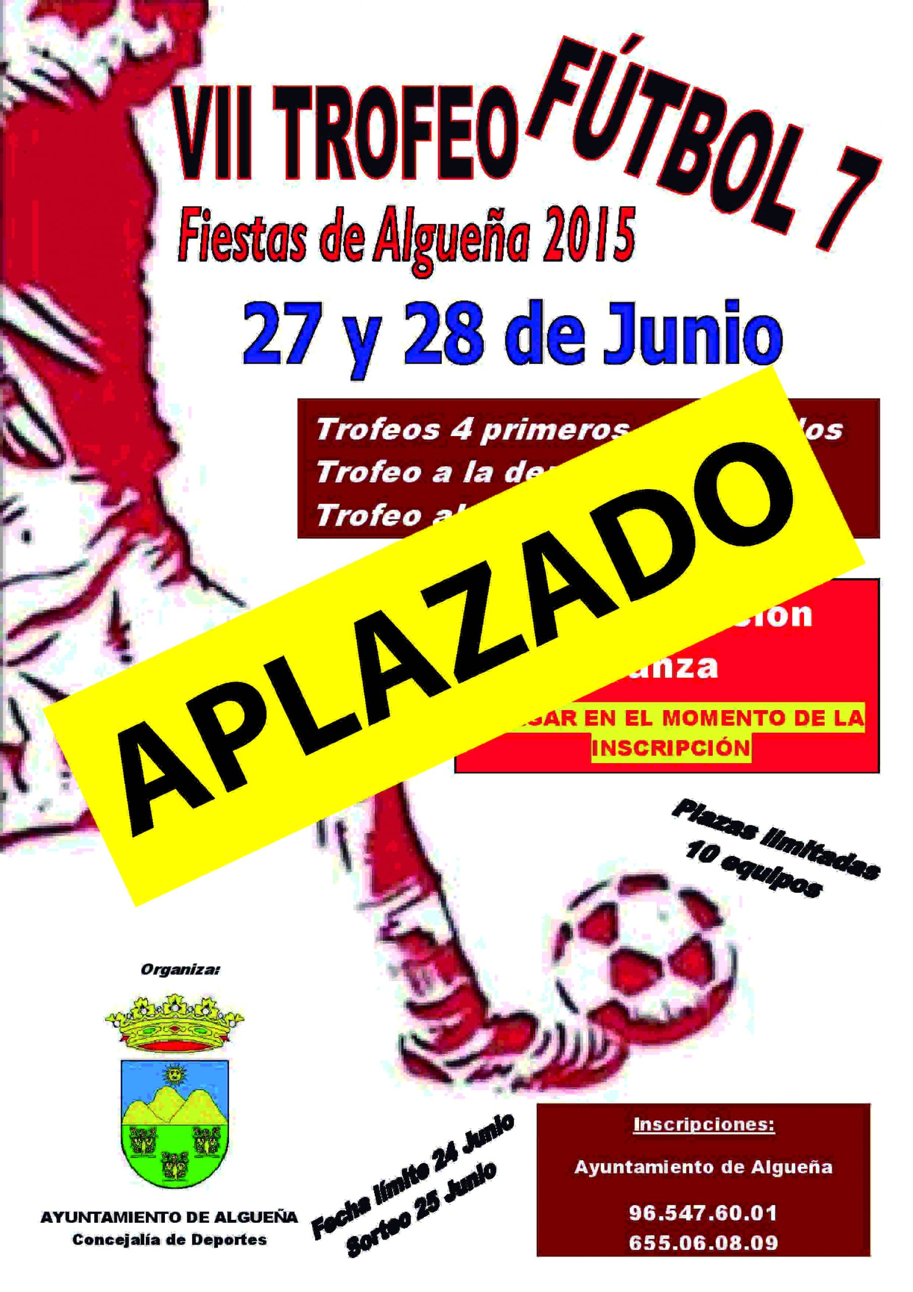 APLAZADO EL «VII TORNEO DE FÚTBOL 7» PREVISTO PARA LOS DÍAS 27 Y 28 DE JUNIO.