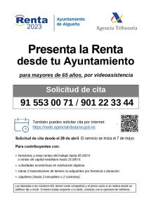 Nuevo servicio » » por video asistencia para mayores de 65 años, de manera gratuita. Cita previa a partir del 29 de abril : 91 553 00 71 / 901 22 33 44 https://sede.agenciatributaria.gob.es