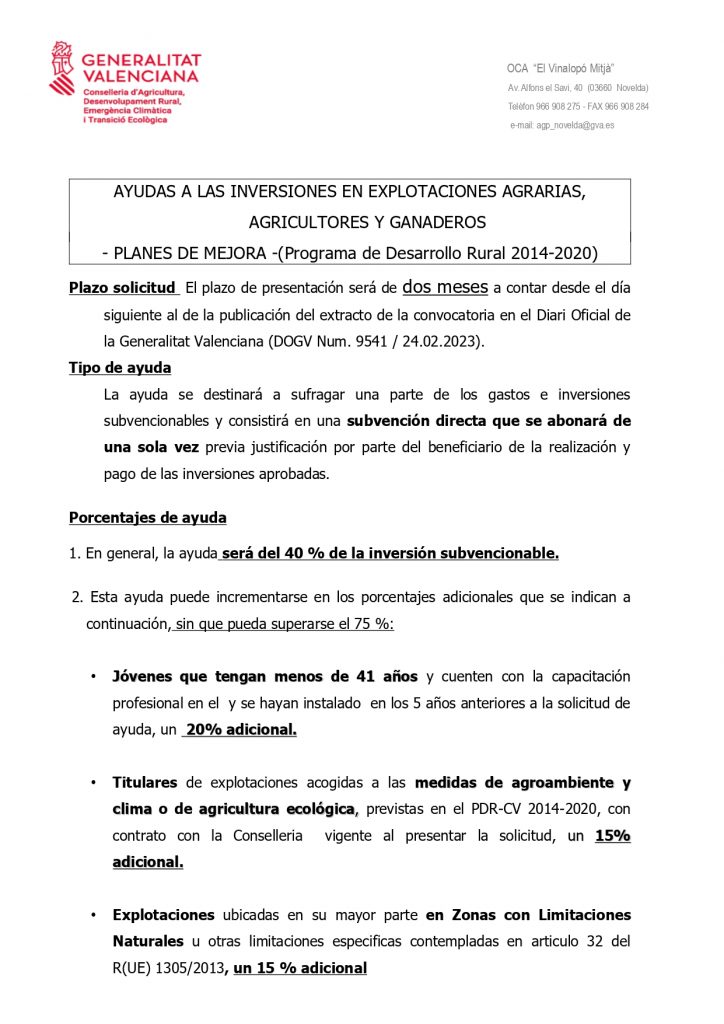 Categoria: Agricultura, Ayudas, Generalitat Valenciana, Noticias, Subvenciónes