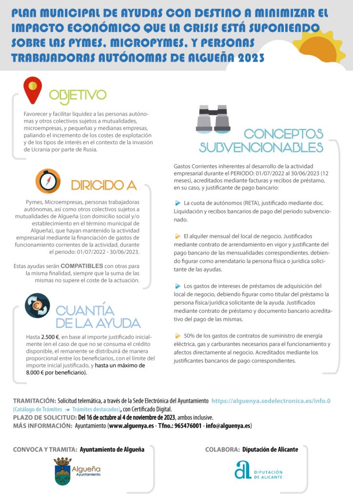 BASES Y CONVOCATORIA PLAN AYUDAS EMPRESAS ALGUEÑA 2023