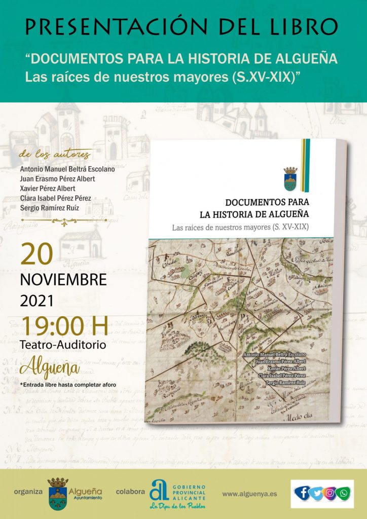 La obra está compuesta por una colección de 56 documentos históricos, seleccionados entre los muchos encontrados, que reúnen información relevante para conocer el pasado de Algueña o l’Alguenya. Aunque el municipio se constituyó en 1933, su territorio no es, como mayoritariamente se cree, un lugar sin pasado. Por encontrarse ubicado en la frontera, y haber formado parte de otros municipios, su historia hasta comienzos del siglo XX se encuentra dispersa en diferentes archivos. En 21 de ellos se han encontrado escritos y retazos que nos hablan del lugar, de cosechas, agua, caminos, casas, bandoleros, vino, ermita, rebaños, frontera, cementerio, lobos y otros elementos de un paisaje en evolución.