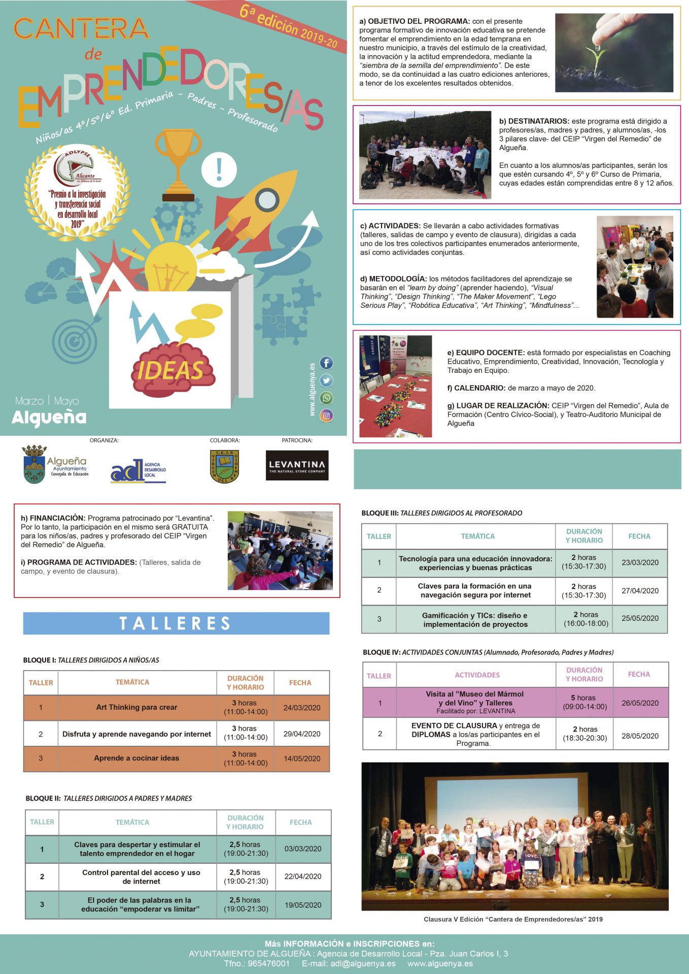 Programa de actividades previsto para la VI edición del Programa #CANTERAdeEMPRENDEDORES/AS 2020.