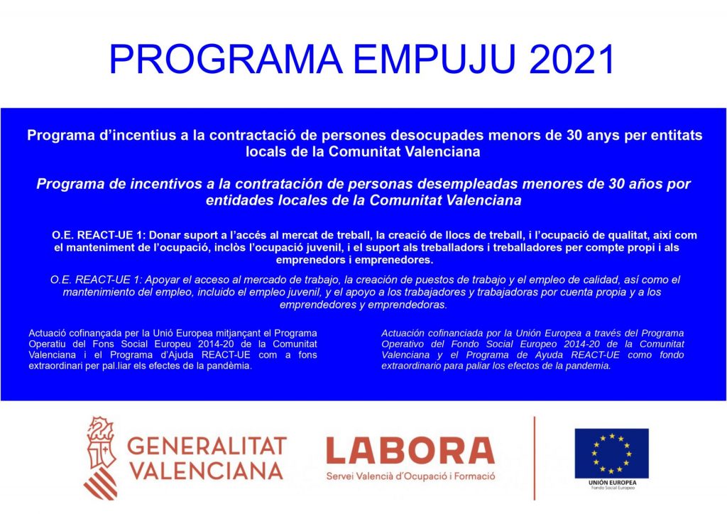 Inicio del Programa EMPUJU 2021 destinado a la contratación de personas desocupadas menores de 30 años para entidades locales de la Comunidad Valenciana.