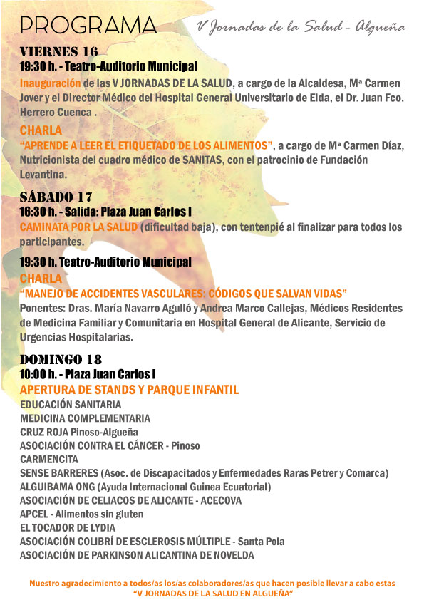 👉PROGRAMA de las #VJornadasdelaSalud en #Algueña 💚