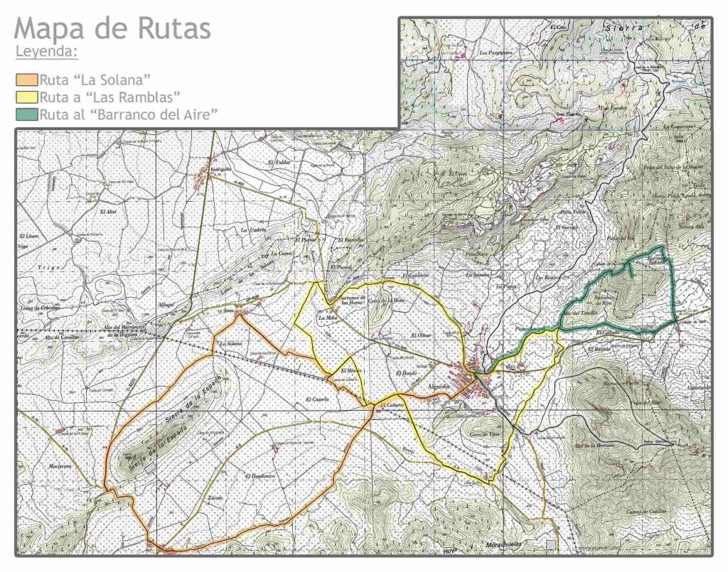 From the indicated point of departure, we will go through the streets of the urban area towards the paved road of the sports center, following it, towards the hamlet of La Solana, for once there, after a view of said town and a Once contemplated the landscape of the area, where highlights the Sierra de la Espada, etc; go to the Cañada de la Leña, hamlet of Abanilla (Murcia), continuing on the path of «La Moleta» until you get back to the place of departure (Algueña).
