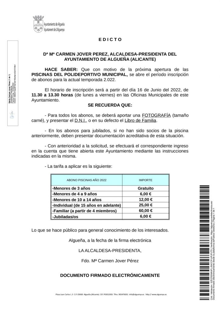 SE ABRE EL PLAZO DE INSCRIPCIÓN PARA LOS ABONOS DE LAS PISCINAS MUNICIPALES
