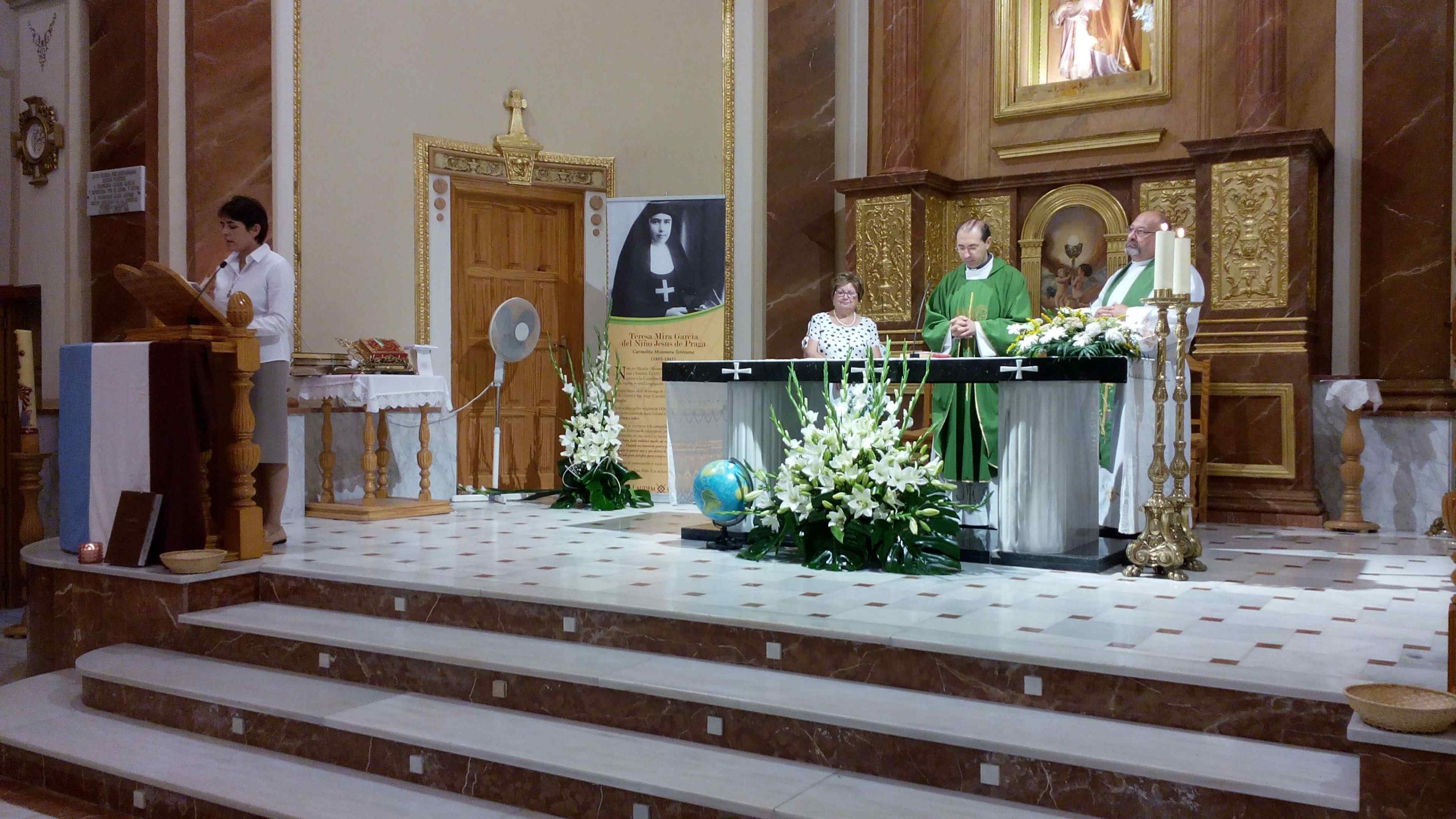 El domingo 27 de septiembre, nuestro Templo Parroquial de San José acogió a un gran número de vecinos y visitantes que quisieron participar del homenaje que la Comunidad de Carmelitas Misioneras Teresianas organizaron con motivo del «75 Aniversario de la muerte de la Hna. Teresa Mira». La Eucaristía fue oficiada por el Delegado diocesano de las Causas de los Santos de Orihuela, D. José Luis Casanova Cases y cantada por la Rondalla, Coros y Danzas Algueña.
