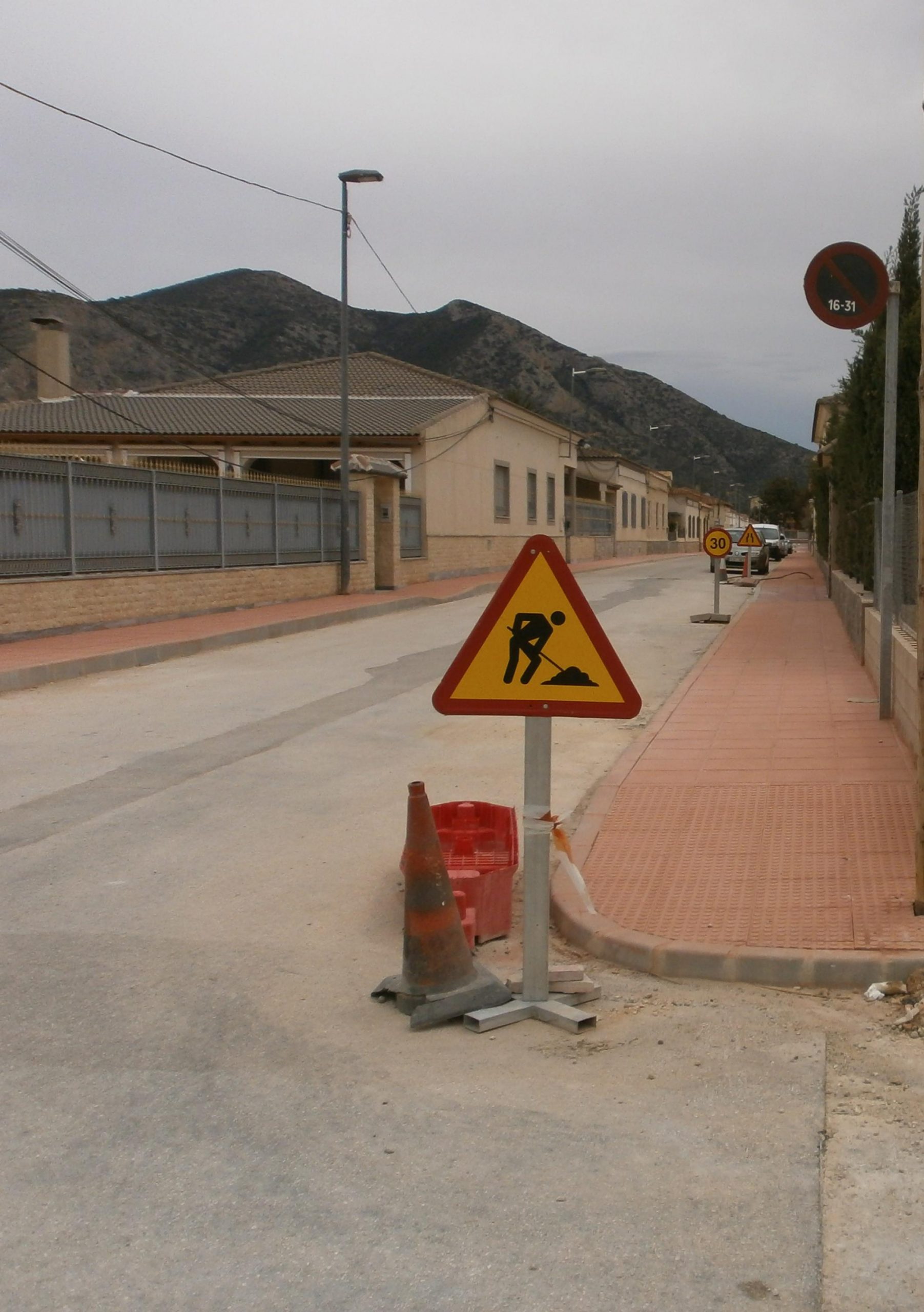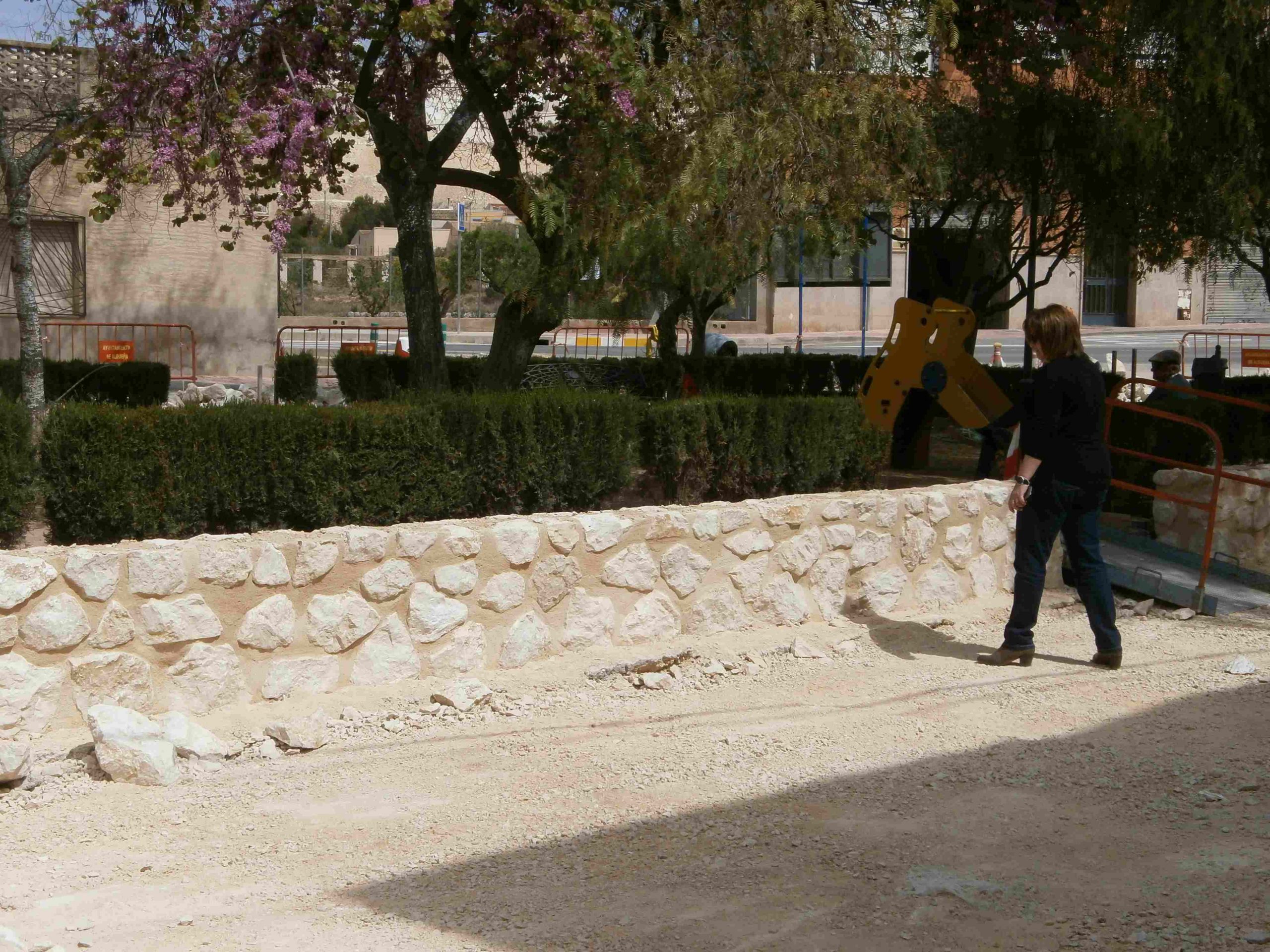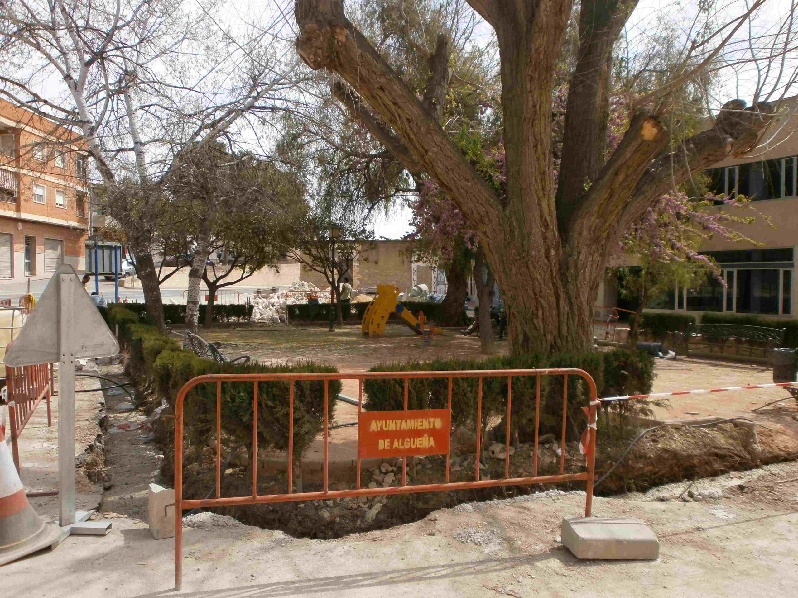 Progreso de las obras «URBANIZACIÓN DE VIALES EN ALGUEÑA», que se están llevando a cabo en C/ San José (renovación red de agua potable) y Plaza de la Concordia (pavimentación con adoquín y reparación del murete del jardín).