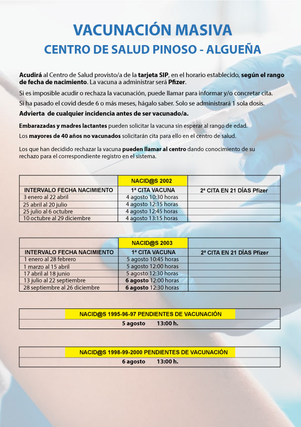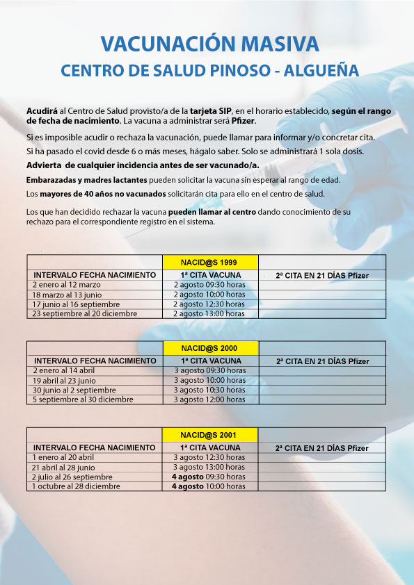 VACUNACIÓN MASIVA COVID-19 NACIDOS/AS ENTRE 1999 Y 2003, Y PENDIENTES DE VACUNACIÓN NACIDOS/AS ENTRE 1995 Y 2000