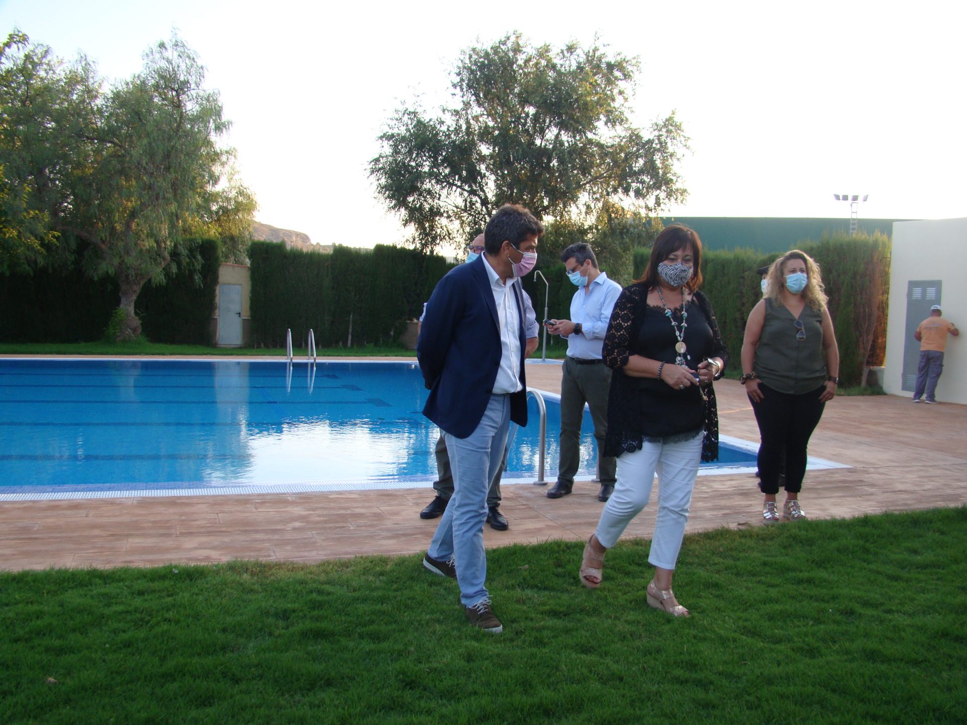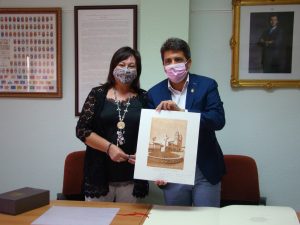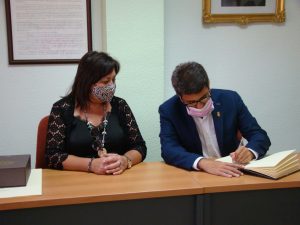 A su llegada a nuestro municipio fueron recibidos en el Ayuntamiento donde, el presidente de la Diputación, tuvo el honor de firmar en el libro de oro del consistorio y a continuación, la alcaldesa, le hizo entrega de un grabado representativo del municipio y obsequio ofrecido por Vinos de Algueña, donde además tuvo la oportunidad de dar traslado de la inquietud de algunos de los proyectos pendientes como son el trazado de la variante entre las carreteras CV-840 y CV-841 de Algueña, así como la Cueva-Museo Etnográfico Municipal, entre otros. A continuación, realizaron la visita al nuevo depósito regulador de agua de La Solana, al campo de fútbol municipal, a las piscinas municipales, y por último, a la Casa-Cueva Municipal.